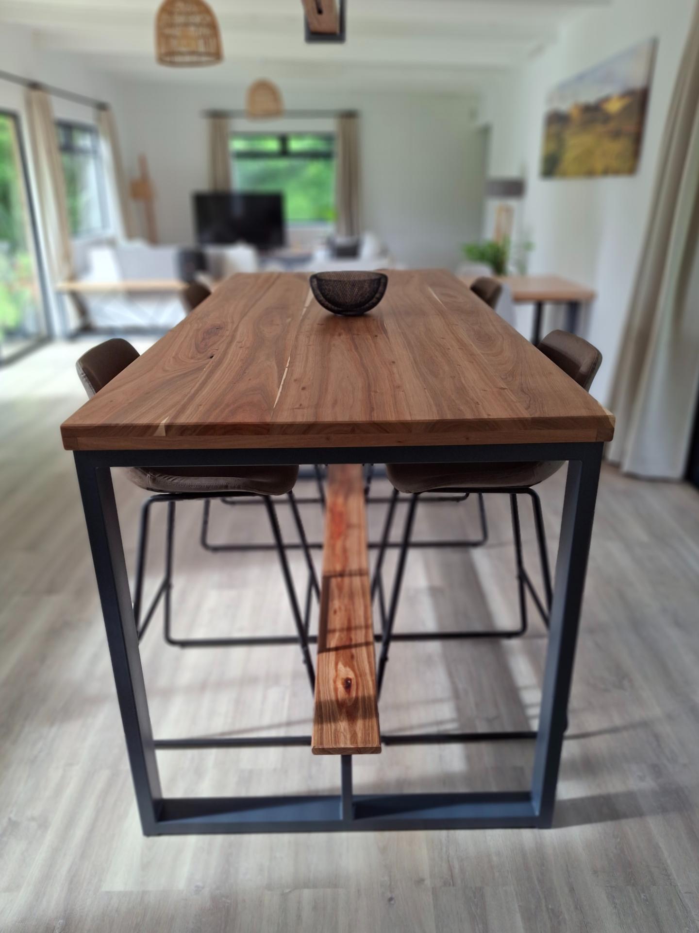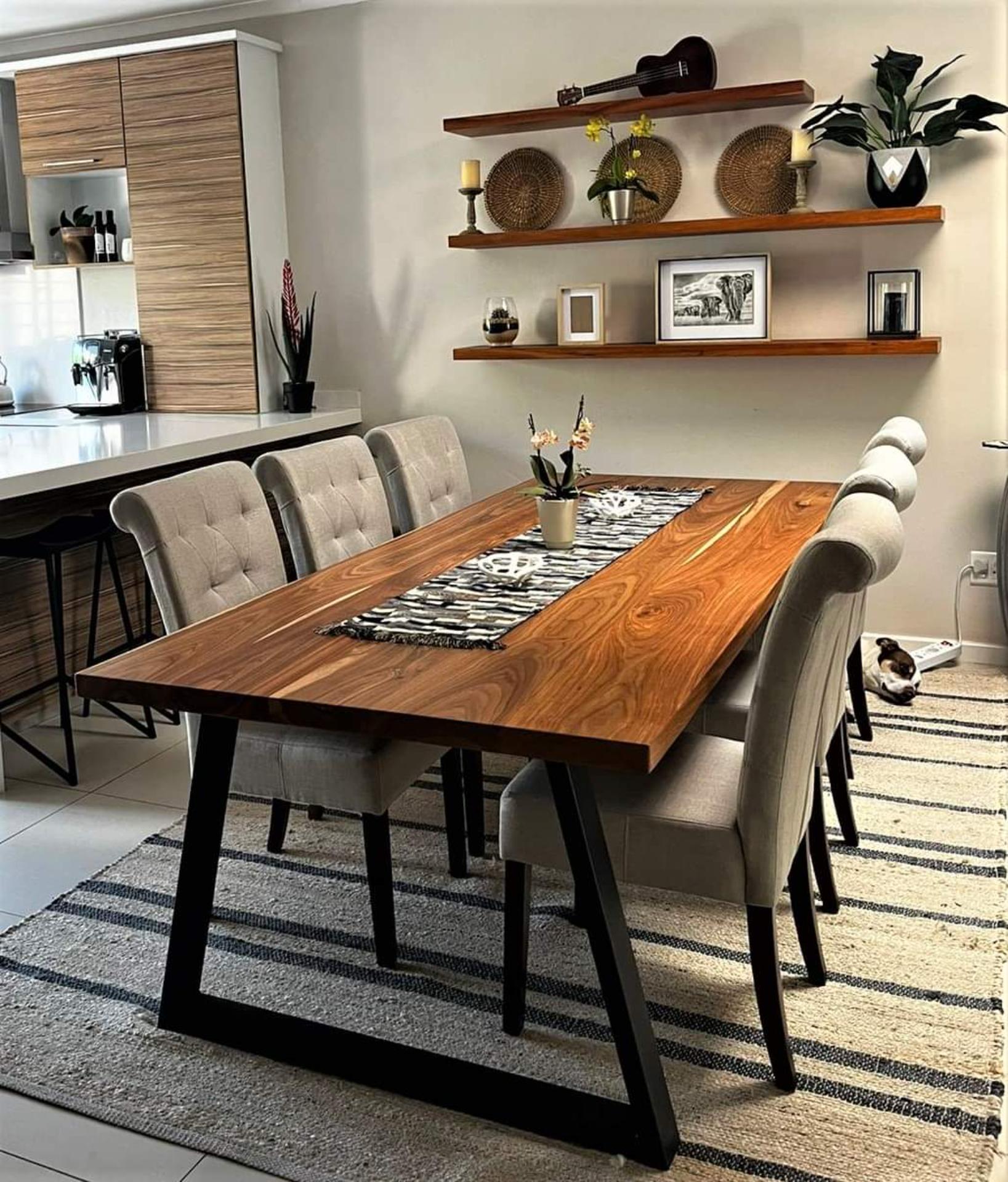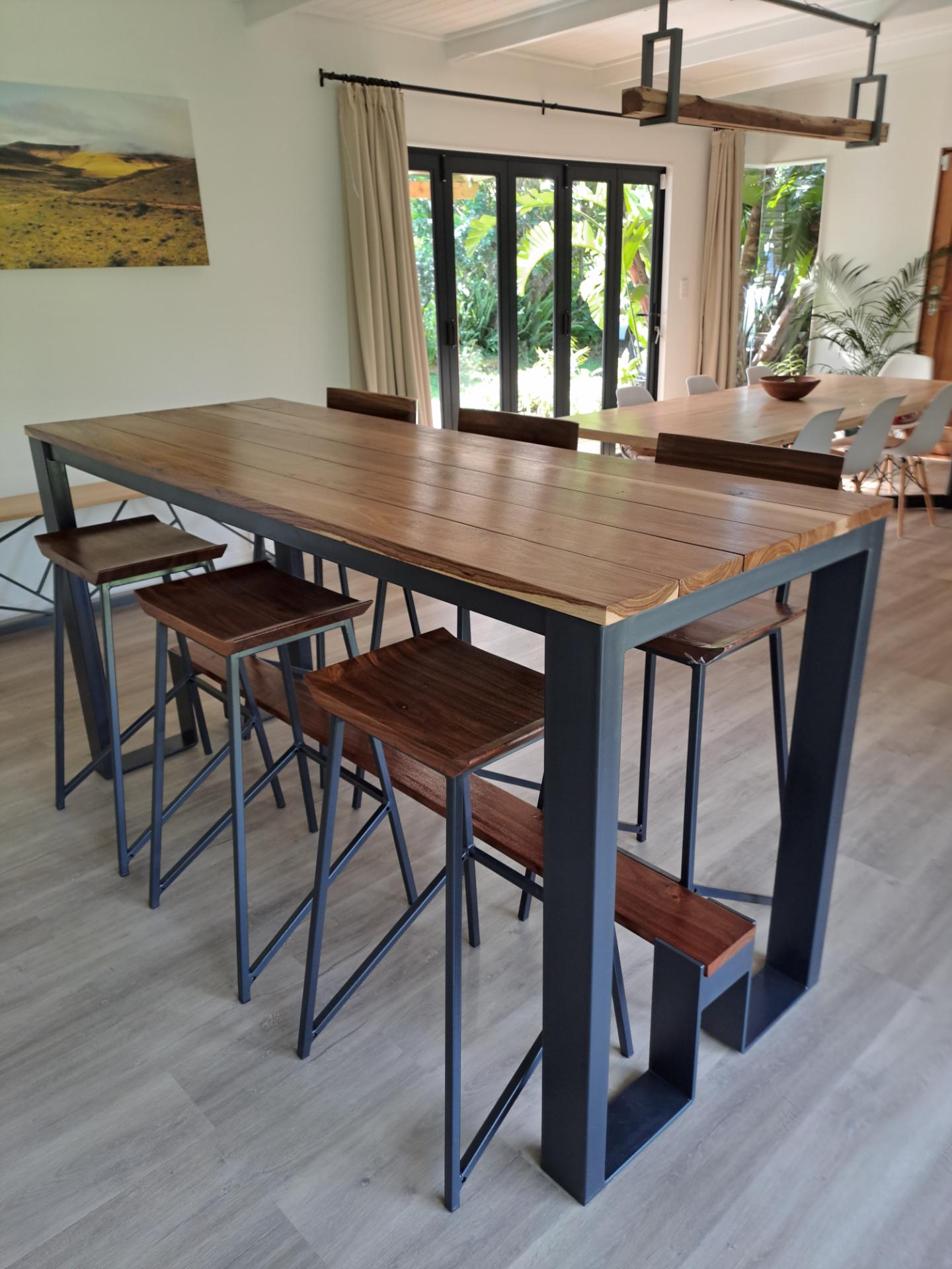 Our dining and bar tables are crafted from solid wood and steel or all wood, combining durability with modern style. Choose between a 6 to 12-seater to perfectly fit your space. Please feel free to reach out to discuss your preferred frame style, wood type, and any other specifications to create a custom-tailored table for your home.